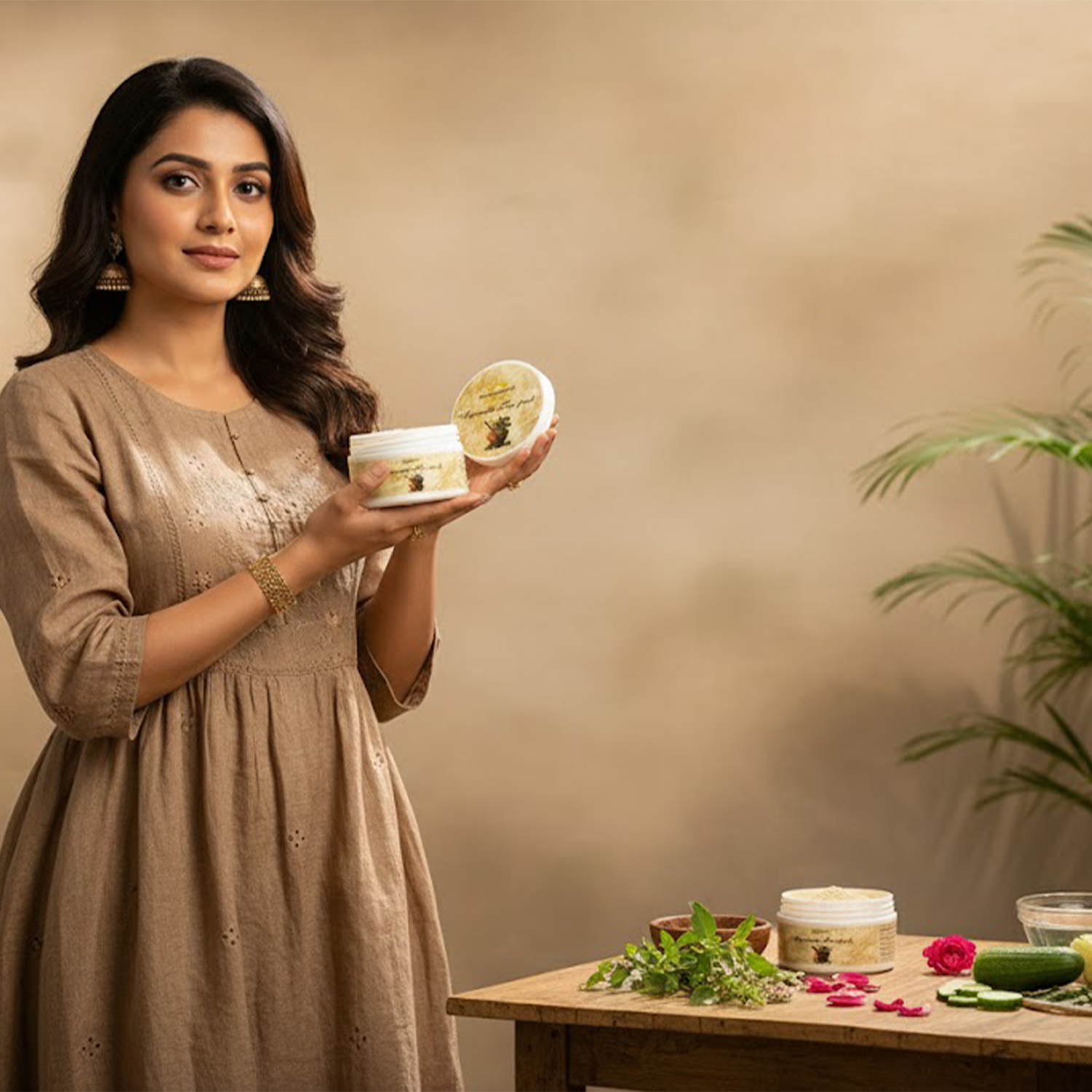 An Ayurvedic face pack is a traditional herbal powder blend used in cosmetic and personal care routines. It is applied externally and washed off after a short duration as part of regular cleansing practices.