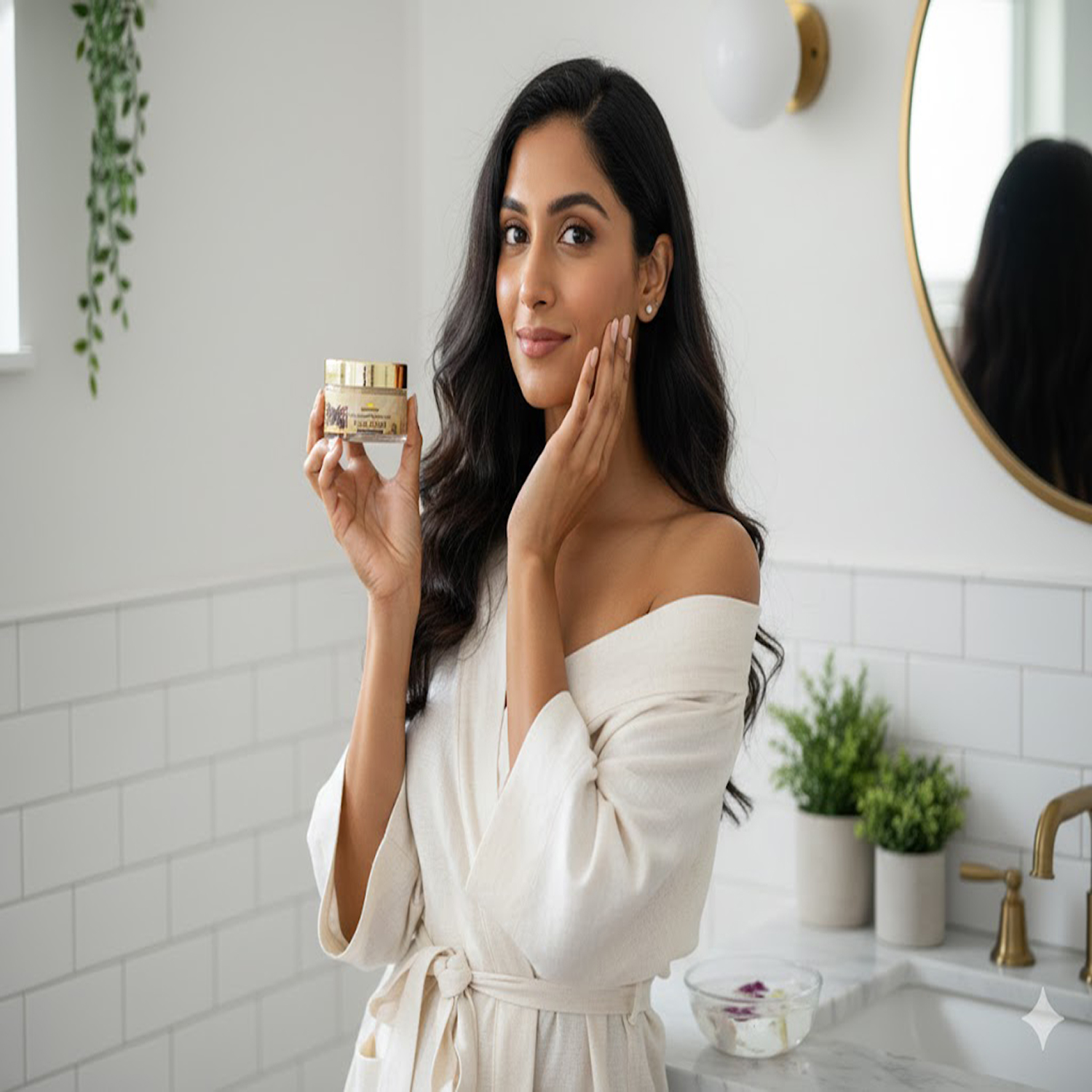 - Gently massage the scrub onto your face in circular motions, avoiding the delicate eye area.
