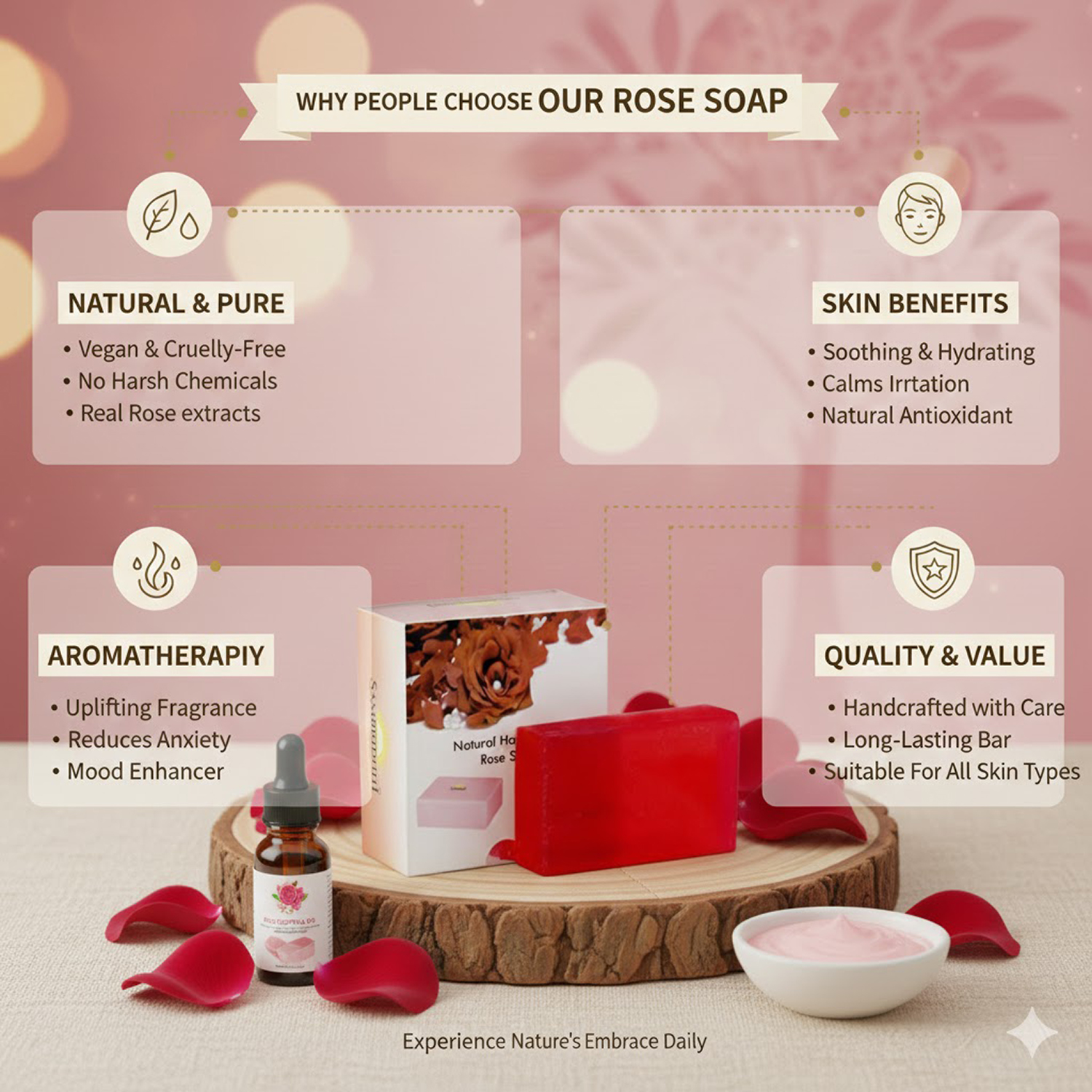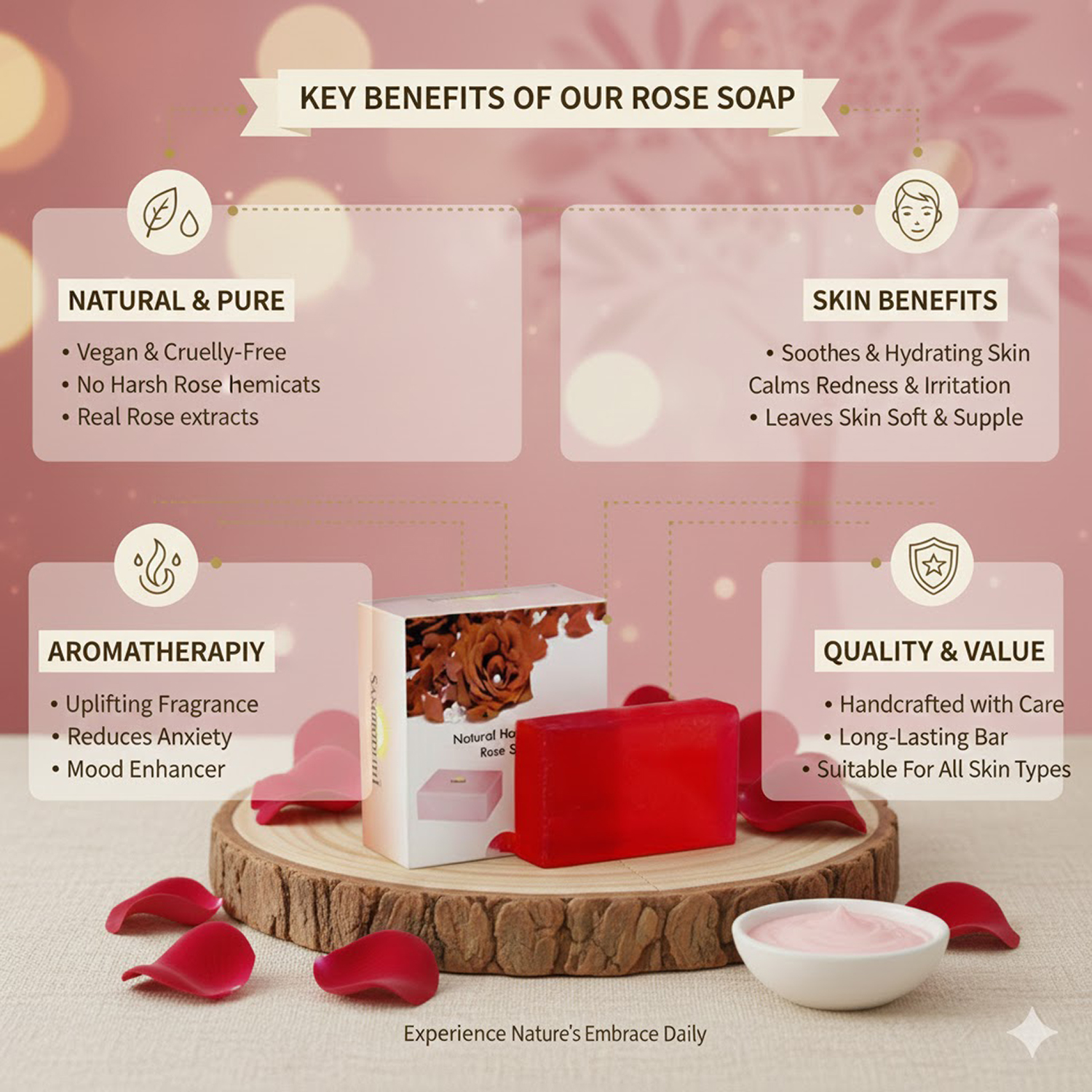 - This is a natural and handmade deeply conditioning body soap bar with natural, mild and pure fragrance of Rose.