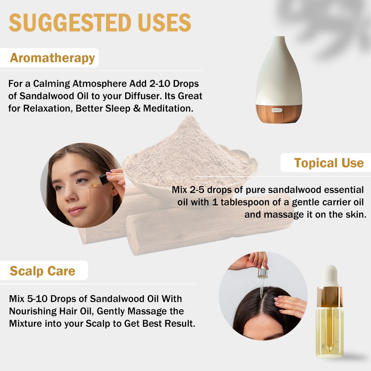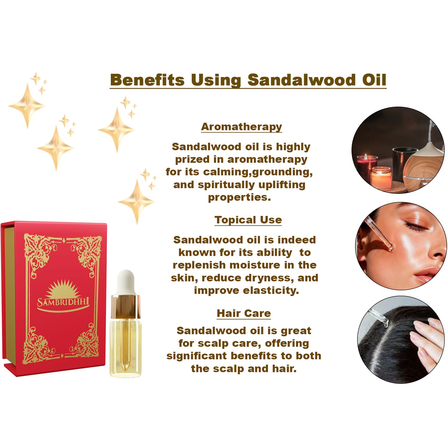 - Sandalwood oil is known as liquid gold, it helps to moisturize and hydrate skin.