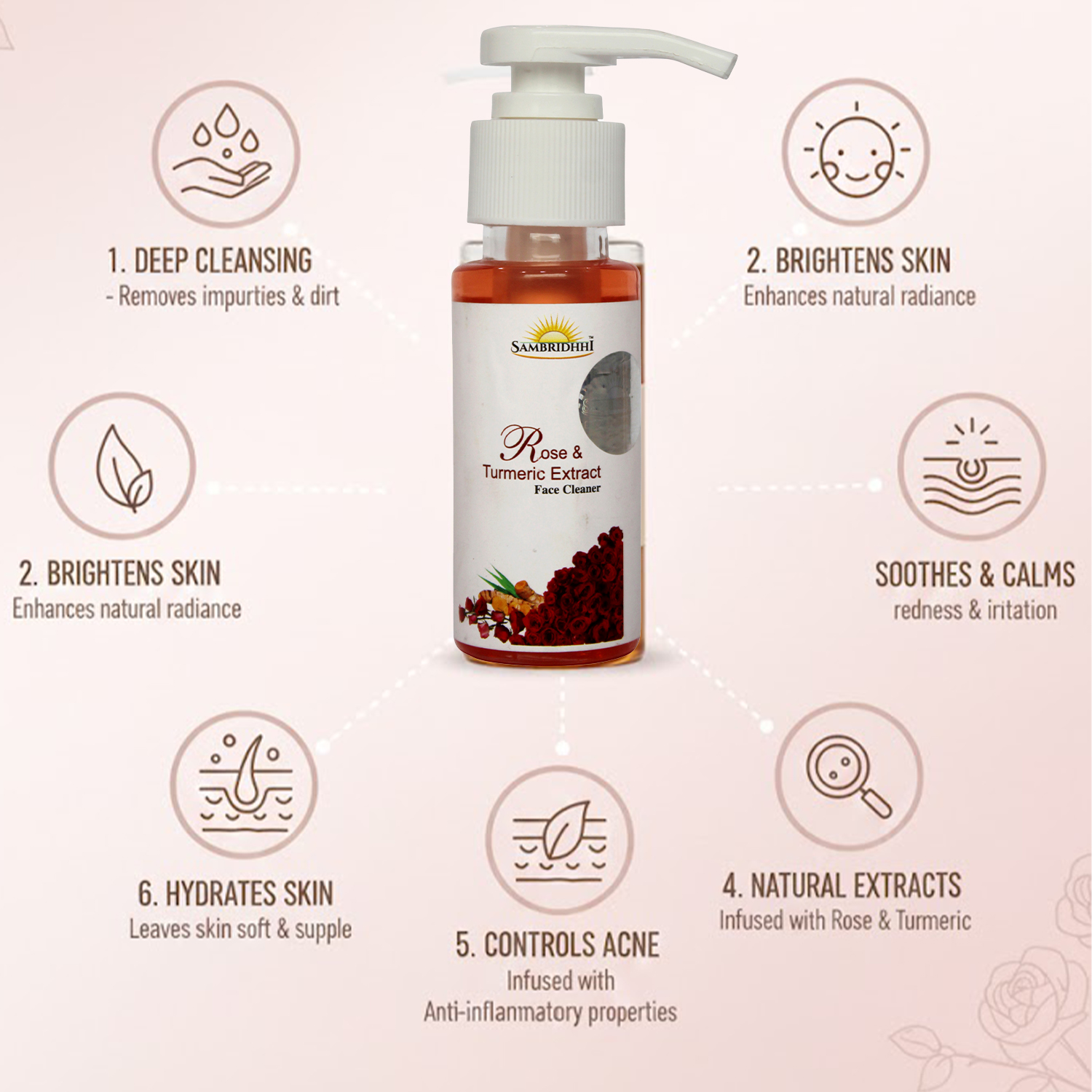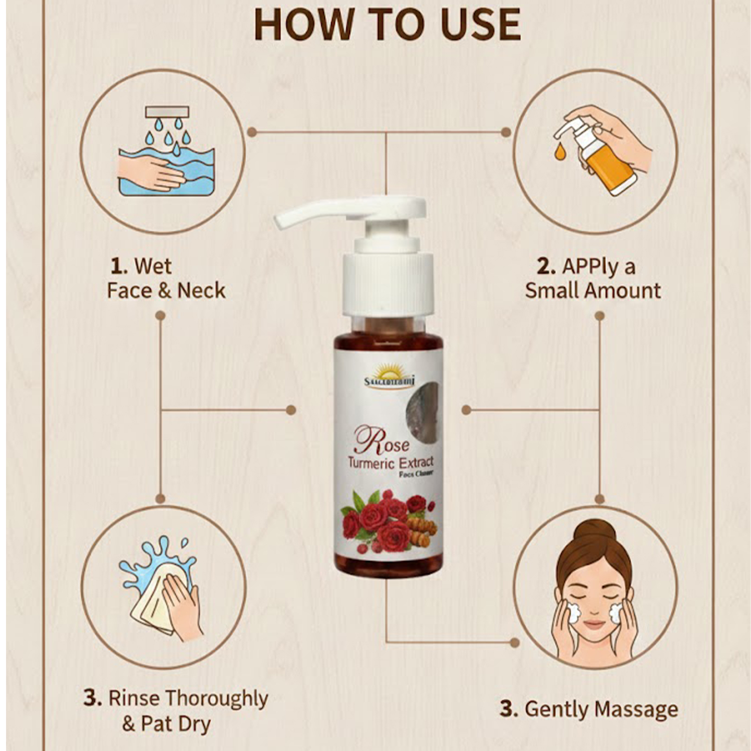 - Formulated with natural ingredients i.e. Turmeric, Rose etc.