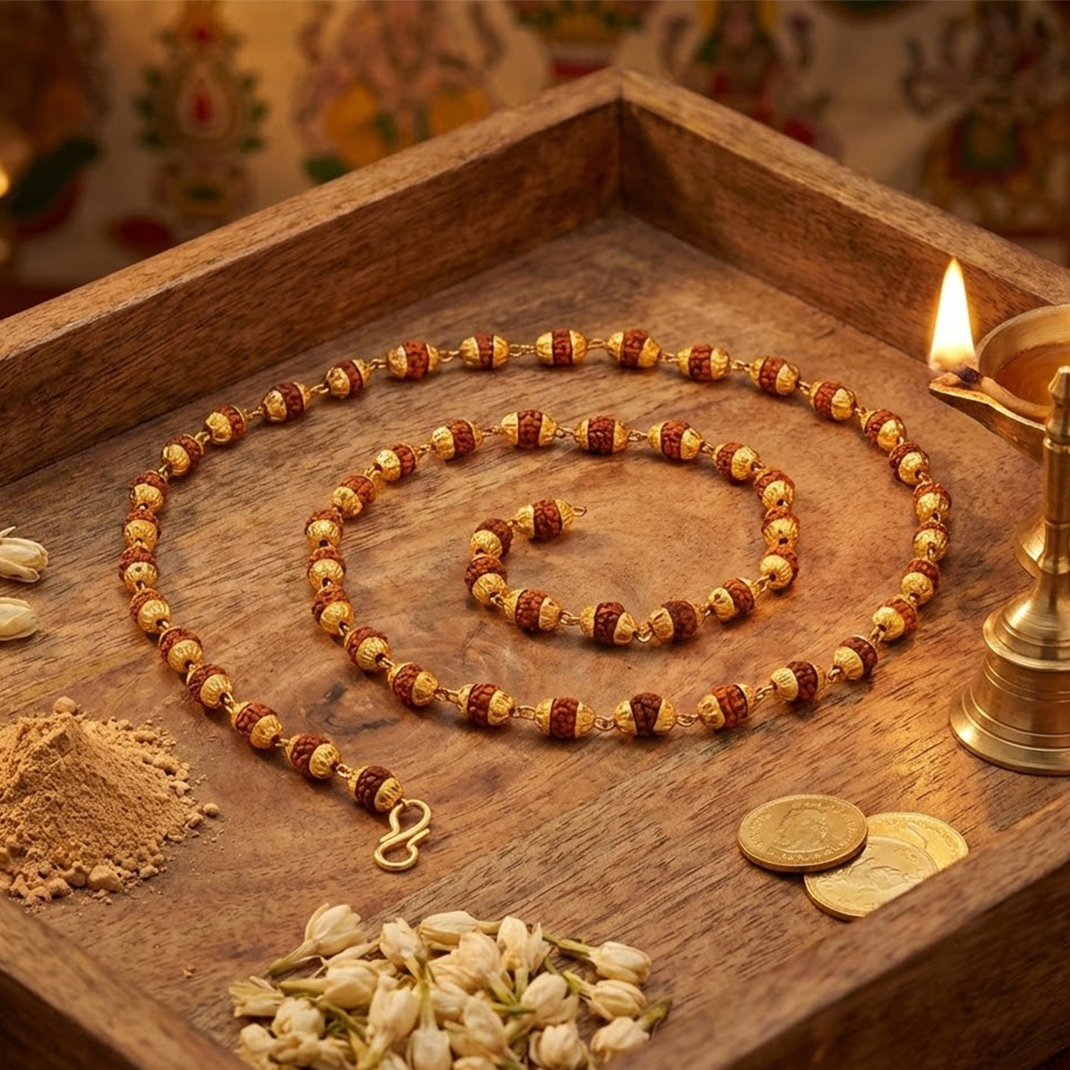 Rudraksha Beaded Gold Tone Chain – 6 MM