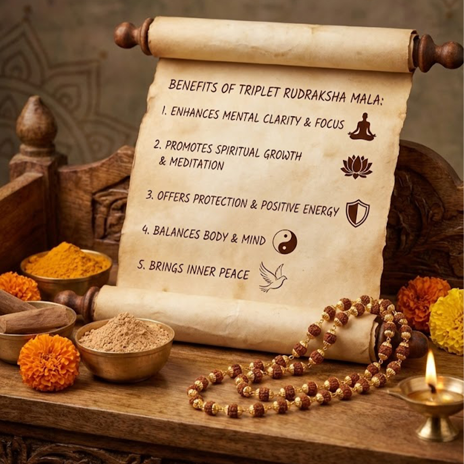 This Rudraksha Triplet Mala is ideal for:
