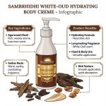 Sambridhhi’s White Oud Fragrance Hand & Body Lotion Crème is a luxurious blend of natural ingredients like aloe vera, shea butter, coconut oil, and botanical extracts. It provides deep hydration, soothes dry skin, and leaves a silky-smooth finish. Infused with the captivating aroma of White Oud, this lightweight, non-greasy lotion nourishes, rejuvenates, and protects your skin while offering a refreshing sensory experience. Perfect for daily use on all skin types.